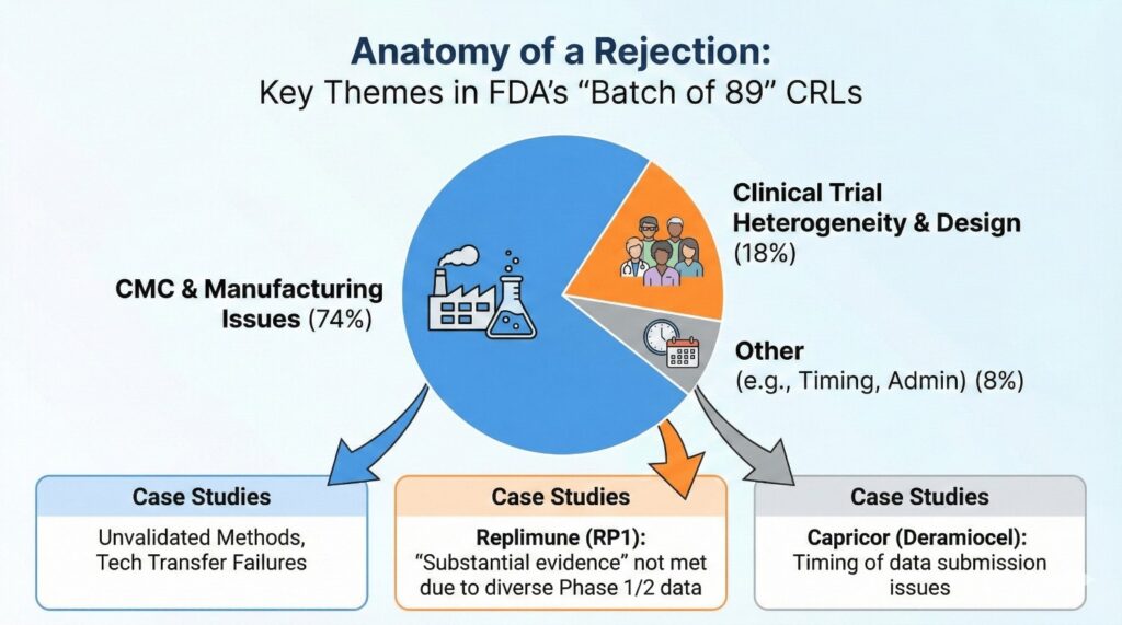 We’ve visualized the key themes and case studies from the Sep 2025 release in the infographic below, which highlights the critical importance of CMC and manufacturing issues.